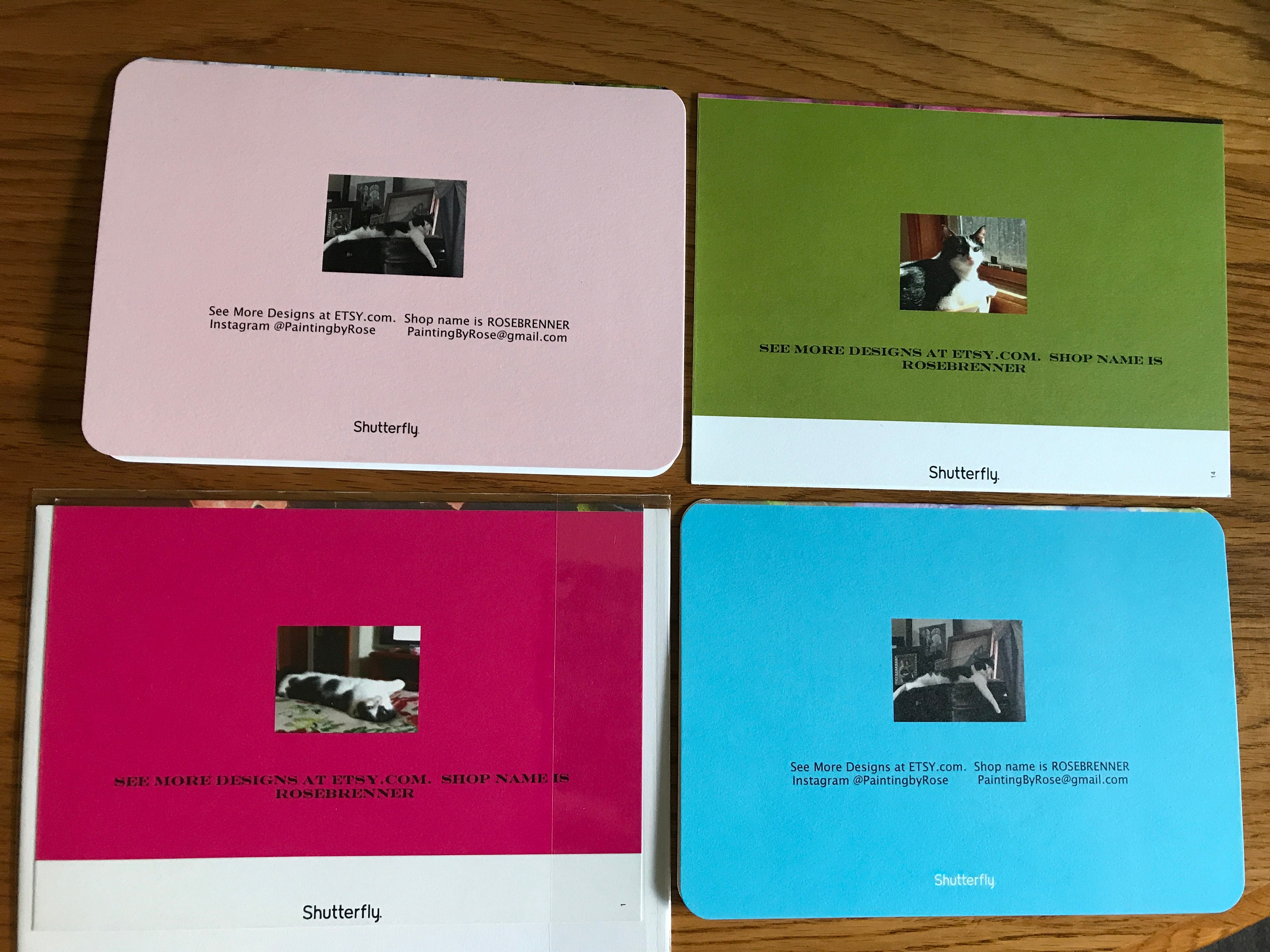 These cards are unique and show you care about the person you send it to. Since the pictures are based on fine art, people sometimes buy them to frame or put on their desk. On the back, There is a picture of my cat, who spends time with me as I paint.